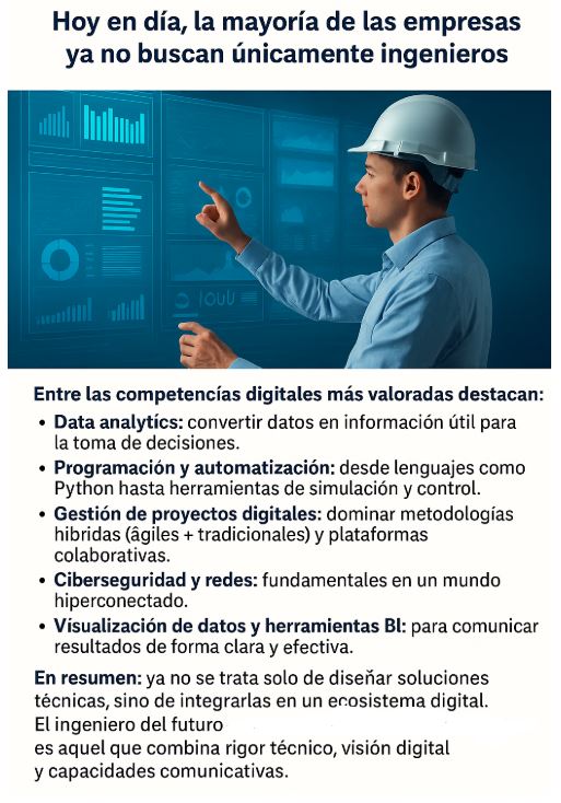 Lo que realmente demandan son profesionales con una sólida base técnica en ingeniería, complementada con competencias digitales, capaces de desenvolverse en entornos cada vez más tecnológicos y multidisciplinares.