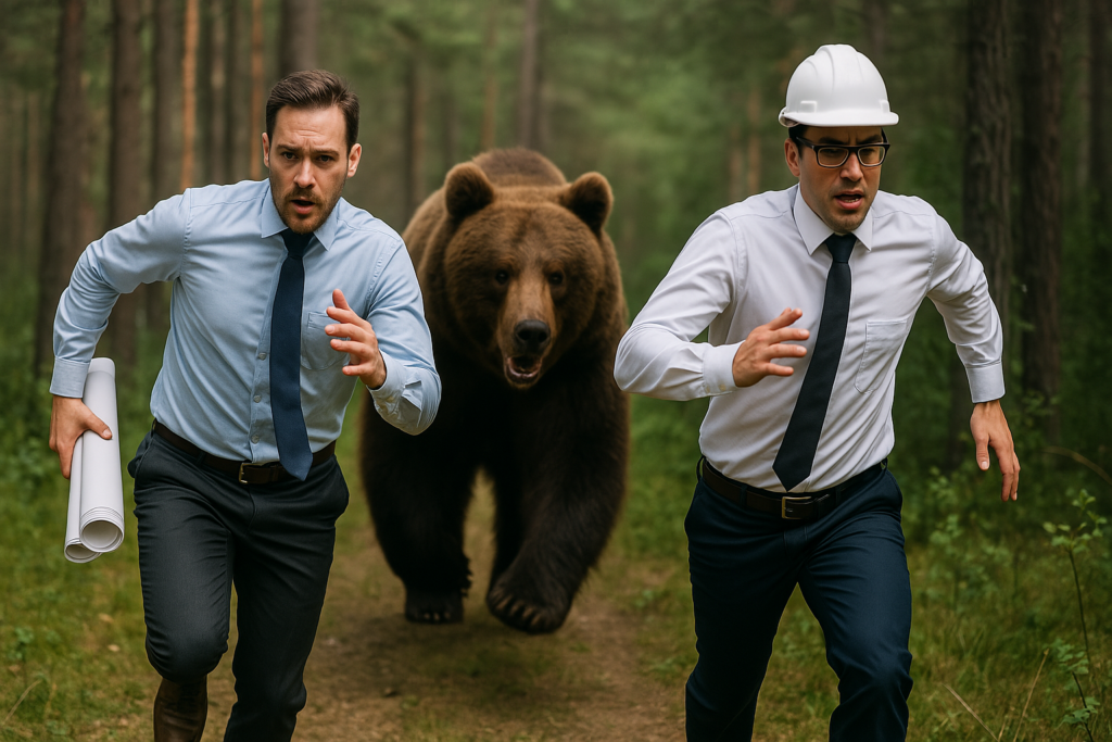La estrategia del oso no es huir con miedo, sino correr con cabeza. Ser práctico, no perfecto. Ser rápido, no apresurado. Y sobre todo, saber que la supervivencia en proyectos industriales no es del más fuerte, sino del más despierto.